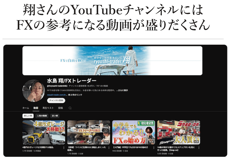 翔さんのYouTubeチャンネルにはFXの参考になる動画が盛りだくさん